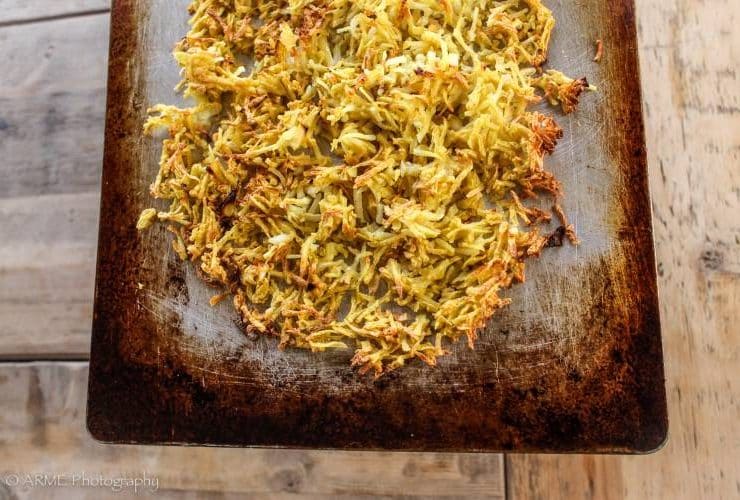 Crispy-crunchy and a perfect accompaniment to any sit-down breakfast. If you don’t have the time to peel and shred potatoes, get a bag of frozen, pre-shredded hash browns at your local market and skip the first couple steps.