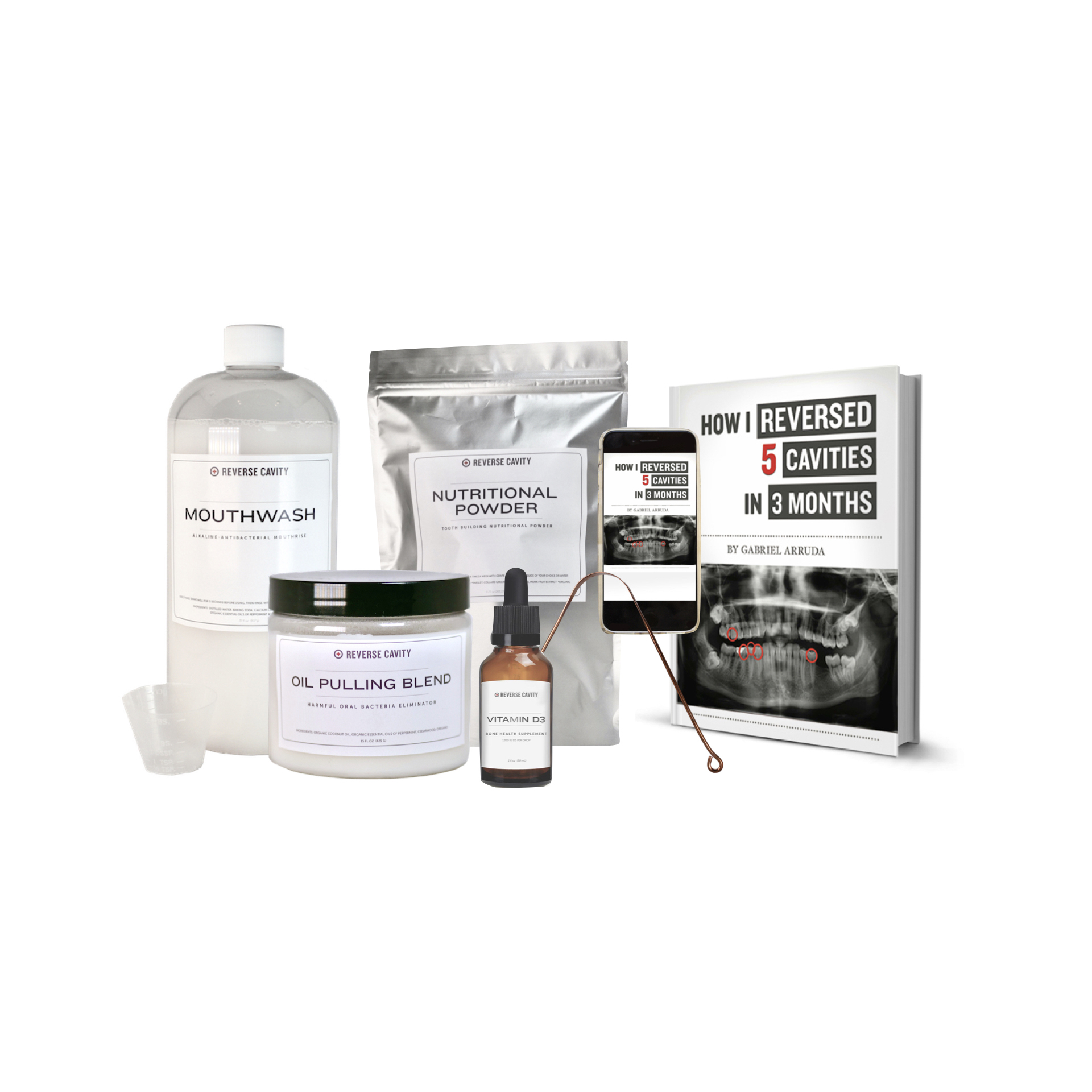 This kit is designed to help teeth naturally remineralize by reducing bad oral bacteria, providing high amounts of nutrition and alkalizing the mouth.